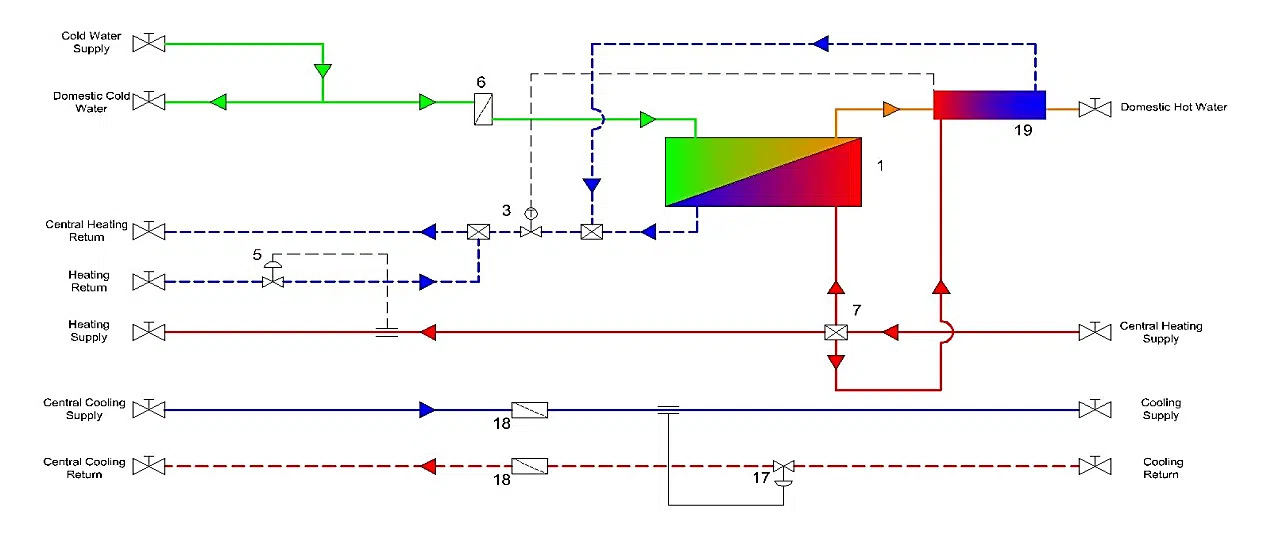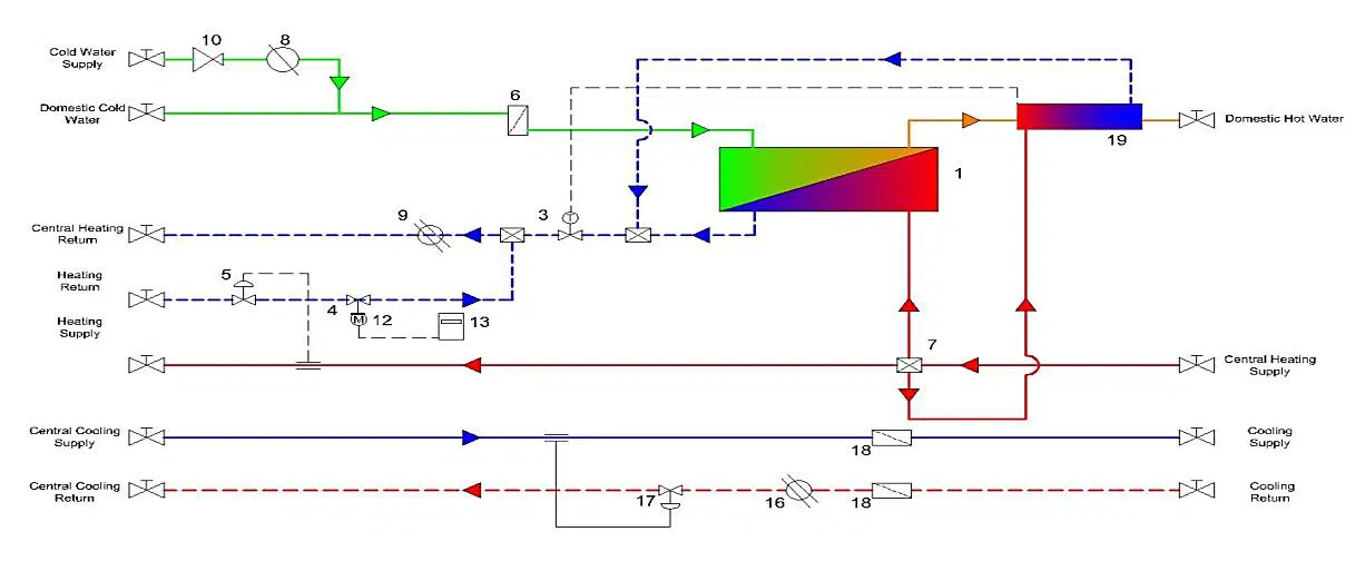 •Merkezi sistemle ısınan-soğutulan konutlarda anlık kullanım sıcak suyu üretimi ve ısıtma hattının balanslanmasıiçin kullanılır.