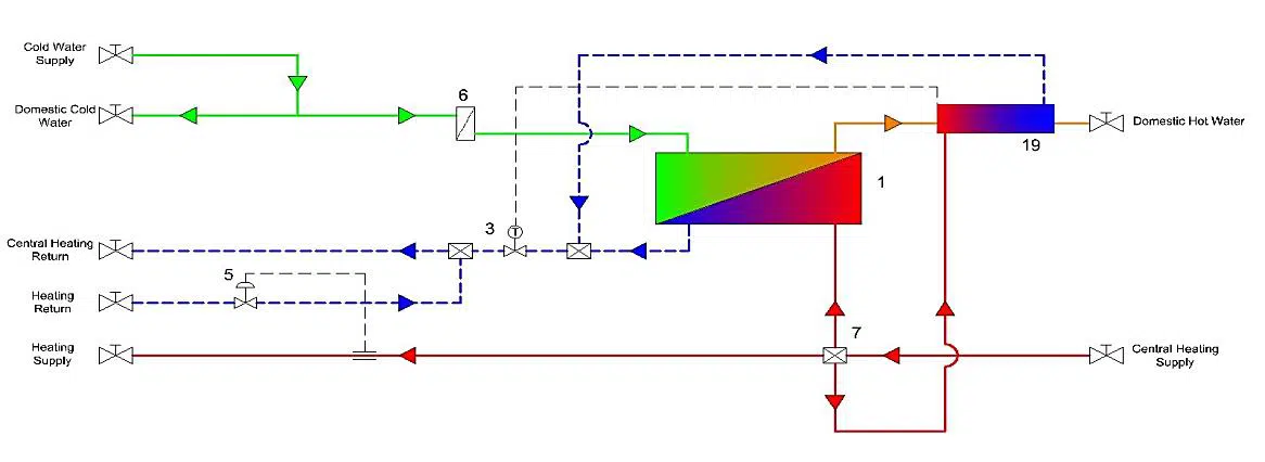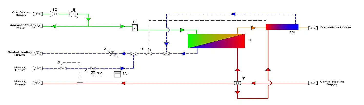 •Merkezi sistemle ısınan-soğutulan konutlarda anlık kullanım sıcak suyu üretimi ve ısıtma hattının balanslanmasıiçin kullanılır.